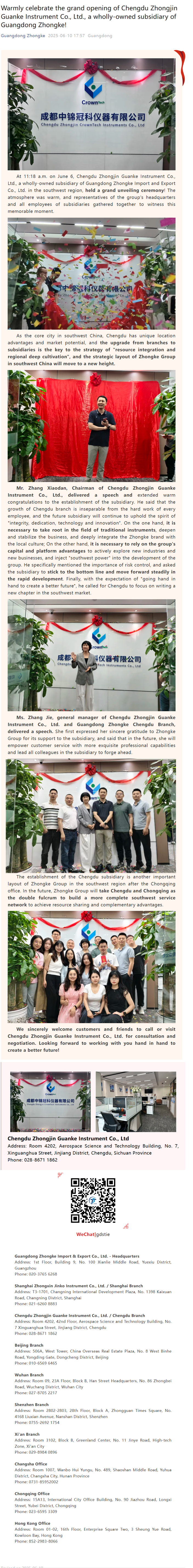 Warmly celebrate the grand opening of Chengdu Zhongjin Guanke Instrument Co., Ltd., a wholly-owned subsidiary of Guangdong Zhongke!